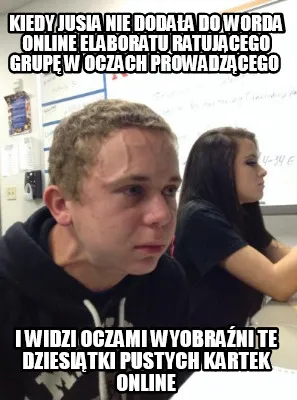 Kiedy Jusia Nie Dodaa Do Worda Online Elaboratu Ratujcego Grup W Oczach Prowadzc Meme Template