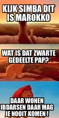 Make your own "Funny Kijk Simba dit is marokko Daar wonen Ibdarsen daar mag je nooit komen ! Wat is d" meme with MemeCreator's free online meme generator. Add text, stickers, and drawings — then download or share. No watermark, no sign-up required.