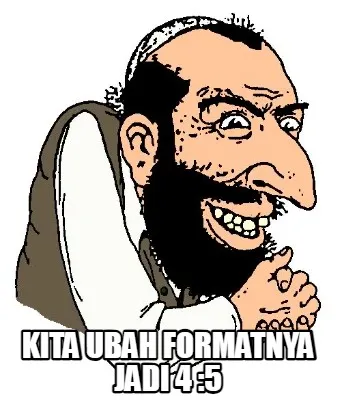 Make your own "Funny kita ubah formatnya jadi 4 :5" meme with MemeCreator's free online meme generator. Add text, stickers, and drawings — then download or share. No watermark, no sign-up required.
