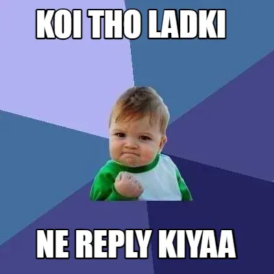 Make your own "Koi tho ladki ne reply kiyaa" meme with MemeCreator's free online meme generator. Add text, stickers, and drawings — then download or share. No watermark, no sign-up required.