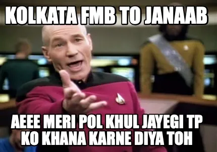 Create Funny KOLKATA FMB TO JANAAB AEEE MERI POL KHUL JAYEGI TP KO KHANA KARNE DIYA TOH Meme