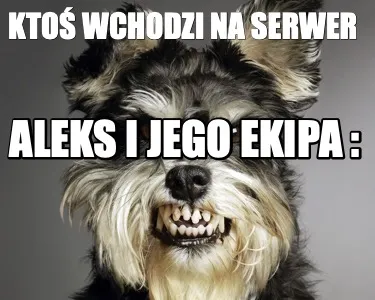 Make your own "Kto Wchodzi Na Serwer Aleks I Jego Ekipa" meme with MemeCreator's free online meme generator. Add text, stickers, and drawings — then download or share. No watermark, no sign-up required.