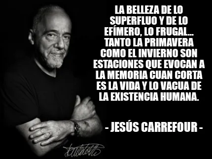 Make your own "La belleza de lo superfluo y de lo efímero, lo frugal... Tanto la primavera com" meme with MemeCreator's free online meme generator. Add text, stickers, and drawings — then download or share. No watermark, no sign-up required.