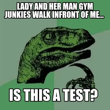 Create Lady and her man gym junkies walk infront of me... Is this a test? Meme
