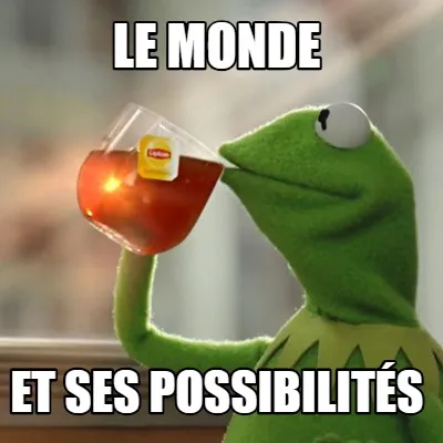 Make your own "Le monde et ses possibilités" meme with MemeCreator's free online meme generator. Add text, stickers, and drawings — then download or share. No watermark, no sign-up required.