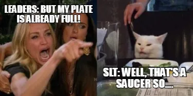 LEADERS: BUT MY PLATE IS ALREADY FULL! SLT: Well, that's a saucer so.... Meme Template