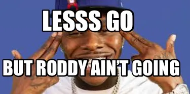 Make your own "Lesss Go But Roddy Aint Going" meme with MemeCreator's free online meme generator. Add text, stickers, and drawings — then download or share. No watermark, no sign-up required.