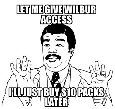 Let me give Wilbur access I’ll just buy $10 packs later Meme Template