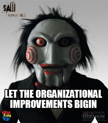 Make your own "Let the Organizational improvements bigin" meme with MemeCreator's free online meme generator. Add text, stickers, and drawings — then download or share. No watermark, no sign-up required.