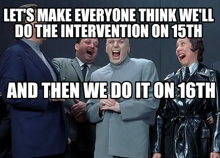 Let's make everyone think we'll do the intervention on 15th And then we do it on Meme Template