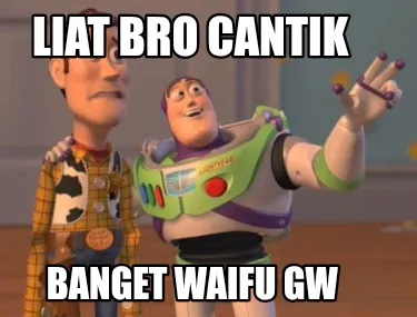 Make your own "Funny Liat bro cantik Banget Waifu gw" meme with MemeCreator's free online meme generator. Add text, stickers, and drawings — then download or share. No watermark, no sign-up required.