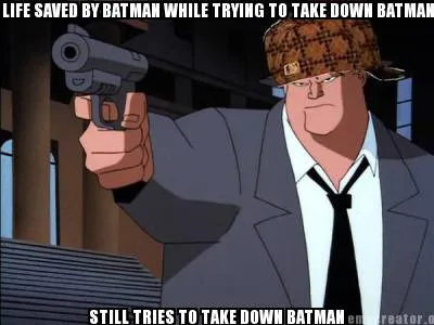 Create LIFE SAVED BY BATMAN WHILE TRYING TO TAKE DOWN BATMAN STILL TRIES TO TAKE DOWN B Meme