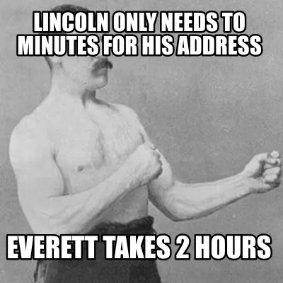 Lincoln Only needs to minutes for his address Everett Takes 2 hours Meme Template