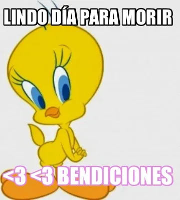 Make your own "Lindo día para morir <3 <3 bendiciones" meme with MemeCreator's free online meme generator. Add text, stickers, and drawings — then download or share. No watermark, no sign-up required.