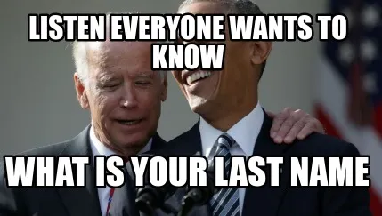 Create Listen everyone wants to know WHAT is your last name Meme