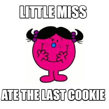 Make your own "Little Miss Ate the Last Cookie" meme with MemeCreator's free online meme generator. Add text, stickers, and drawings — then download or share. No watermark, no sign-up required.