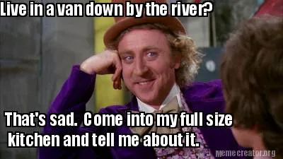Create Live in a van down by the river? That's sad. Come into my full size kitchen and Meme