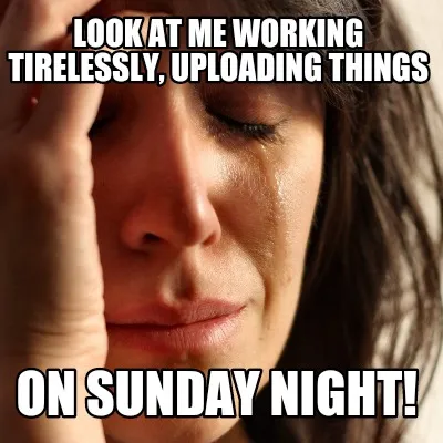 Create Look at me working tirelessly, uploading things ON SUNDAY NIGHT! Meme