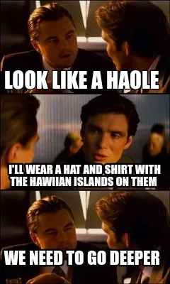 Create Funny Look like a Haole I'll wear a hat and shirt with the Hawiian Islands on them We Meme
