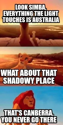 LOOK SIMBA, EVERYTHING THE liGHT TOUCHes IS AUSTRALIA That's Canberra, you never Meme Template