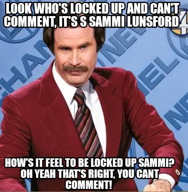 Create Look who's locked up and can't comment, it's s Sammi Lunsford How's it feel to Meme