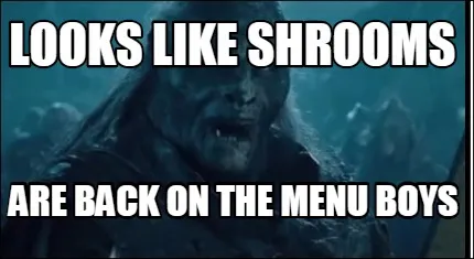 Make your own "Looks like shrooms are back on the menu boys" meme with MemeCreator's free online meme generator. Add text, stickers, and drawings — then download or share. No watermark, no sign-up required.