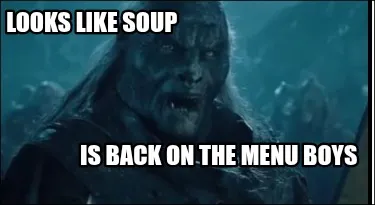 Create Funny Looks like soup Is back on the menu boys Meme
