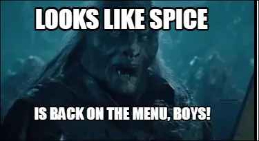 Make your own "Looks like spice is back on the menu, boys!" meme with MemeCreator's free online meme generator. Add text, stickers, and drawings — then download or share. No watermark, no sign-up required.