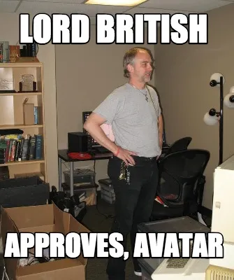 Make your own "Lord British Approves, avatar" meme with MemeCreator's free online meme generator. Add text, stickers, and drawings — then download or share. No watermark, no sign-up required.