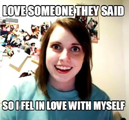 Make your own "Love someone they said so i fel in love with myself" meme with MemeCreator's free online meme generator. Add text, stickers, and drawings — then download or share. No watermark, no sign-up required.