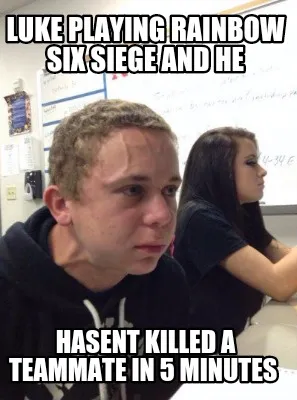 Create Luke Playing rainbow six siege and he Hasent killed a teammate in 5 minutes Meme