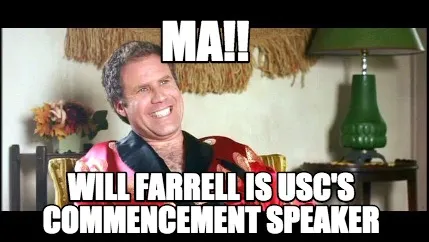 MA!! WIll farrell is usc's commencement speaker Meme Template