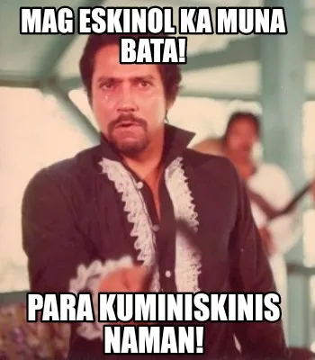Make your own "MAG ESKINOL KA MUNA BATA! para kuminiskinis naman!" meme with MemeCreator's free online meme generator. Add text, stickers, and drawings — then download or share. No watermark, no sign-up required.