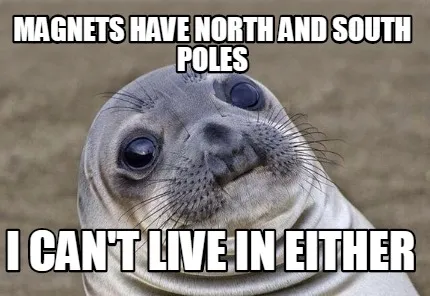 Magnets have North and South poles I can't live in either Meme Template