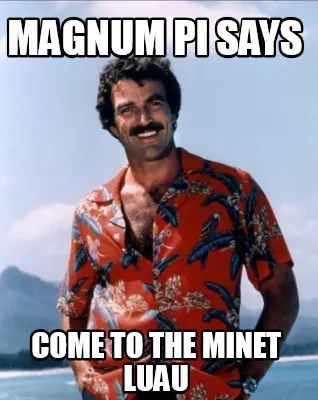 Create Magnum PI says come to the minet luau Meme