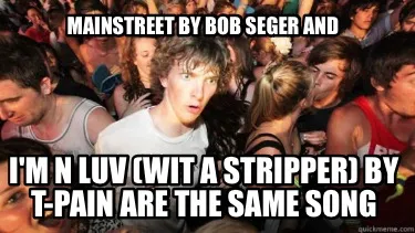 Create Mainstreet by Bob Seger and I'm n luv (wit a stripper) by T-pain are the same s Meme