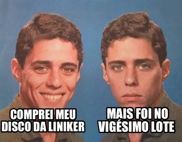 Make your own "Mais foi no vigésimo lote Comprei meu disco da liniker" meme with MemeCreator's free online meme generator. Add text, stickers, and drawings — then download or share. No watermark, no sign-up required.
