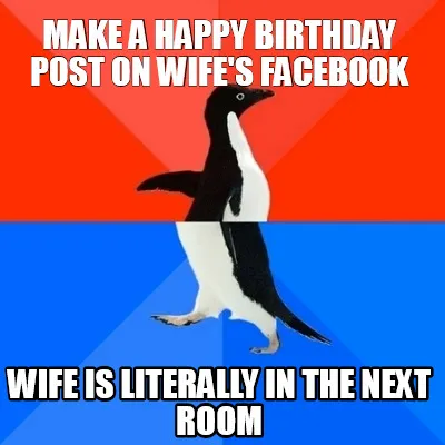 Create Make a happy birthday post on wife's Facebook Wife is literally in the next room Meme