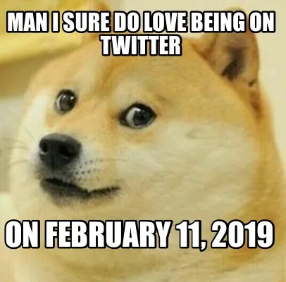 Make your own "Man I sure do love being on Twitter On February 11, 2019" meme with MemeCreator's free online meme generator. Add text, stickers, and drawings — then download or share. No watermark, no sign-up required.