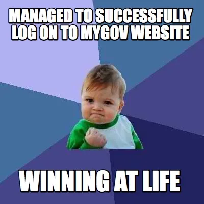 Create Managed to successfully log on to mygov website winning at life Meme