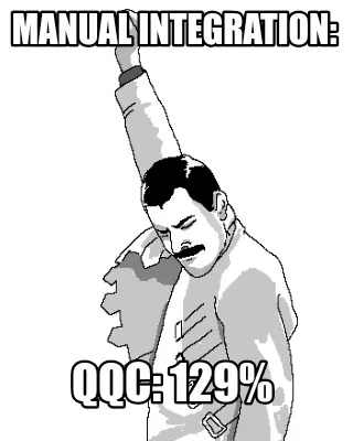 Make your own "Manual Integration: QQC: 129%" meme with MemeCreator's free online meme generator. Add text, stickers, and drawings — then download or share. No watermark, no sign-up required.