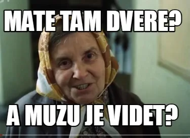 Make your own "Funny mate tam dvere? A muzu je videt?" meme with MemeCreator's free online meme generator. Add text, stickers, and drawings — then download or share. No watermark, no sign-up required.