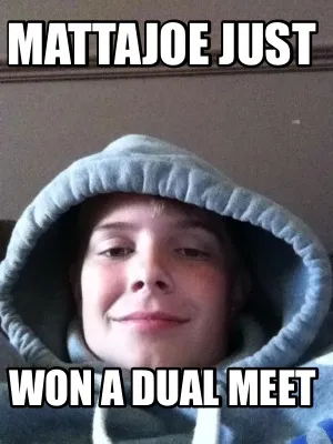 Make your own "Mattajoe just won a dual meet" meme with MemeCreator's free online meme generator. Add text, stickers, and drawings — then download or share. No watermark, no sign-up required.
