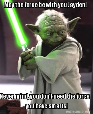 Create Funny May the force be with you Jayden! Never mind, you don't need the force you have Meme