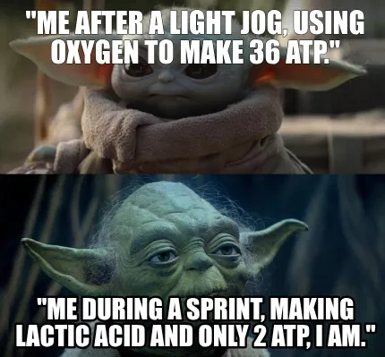 "Me after a light jog, using Oxygen to make 36 ATP." "Me during a sprint, making Meme Template