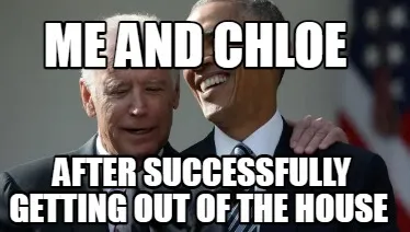 Funny Me and Chloe after successfully getting out of the house Meme Template