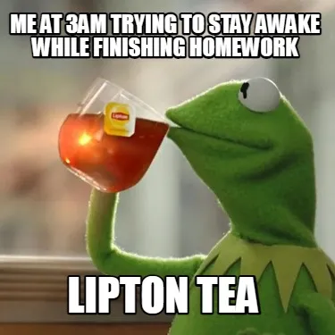 Create Me at 3am trying to stay awake while finishing homework Lipton Tea Meme