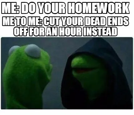 Create Funny Me: Do your homework Me to me: cut your dead ends off for an hour instead Meme