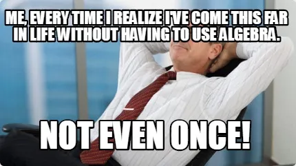 Create Me, every time I realize I've come this far in life without having to use algebr Meme