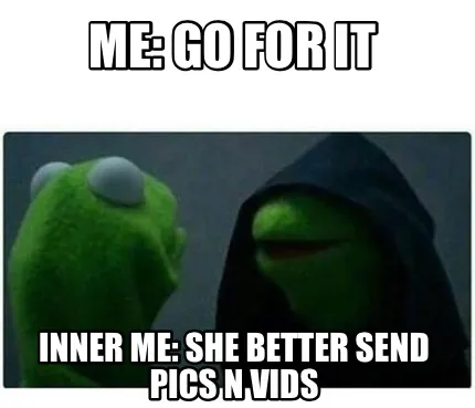 Me: Go for it Inner Me: She better send pics n vids Meme Template